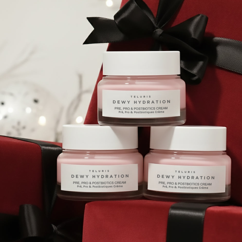 As an independent beauty brand, it is our mission to embody these very personal values by offering a thoughtful approach to gifting with gentle, science-backed formulations powered by TriBiotics: a synergistic 11 blend of pre, pro, and postbiotics designed to protect and strengthen the skin’s microbiome. Rooted in advanced South Korean microbiome research, each Teluris formula is crafted to restore harmony, hydration, and resilience. Sustainable beauty gifting goes beyond recyclable packaging; it reflects a deeper understanding of wellness and environmental responsibility. Teluris’ clean, vegan skincare ritual supports grounded, nourished, and balanced skin.